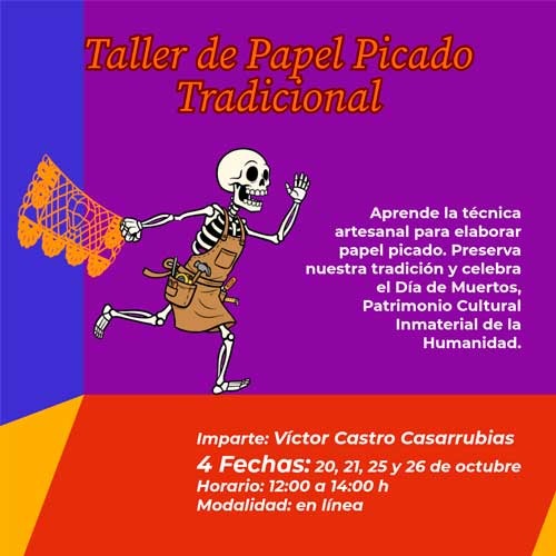 Aprende la técnica artesanal para elaborar papel picado. Preserva la tradición y celebra el Día de Muertos, Patrimonio Cultural Inmaterial de la Humanidad.